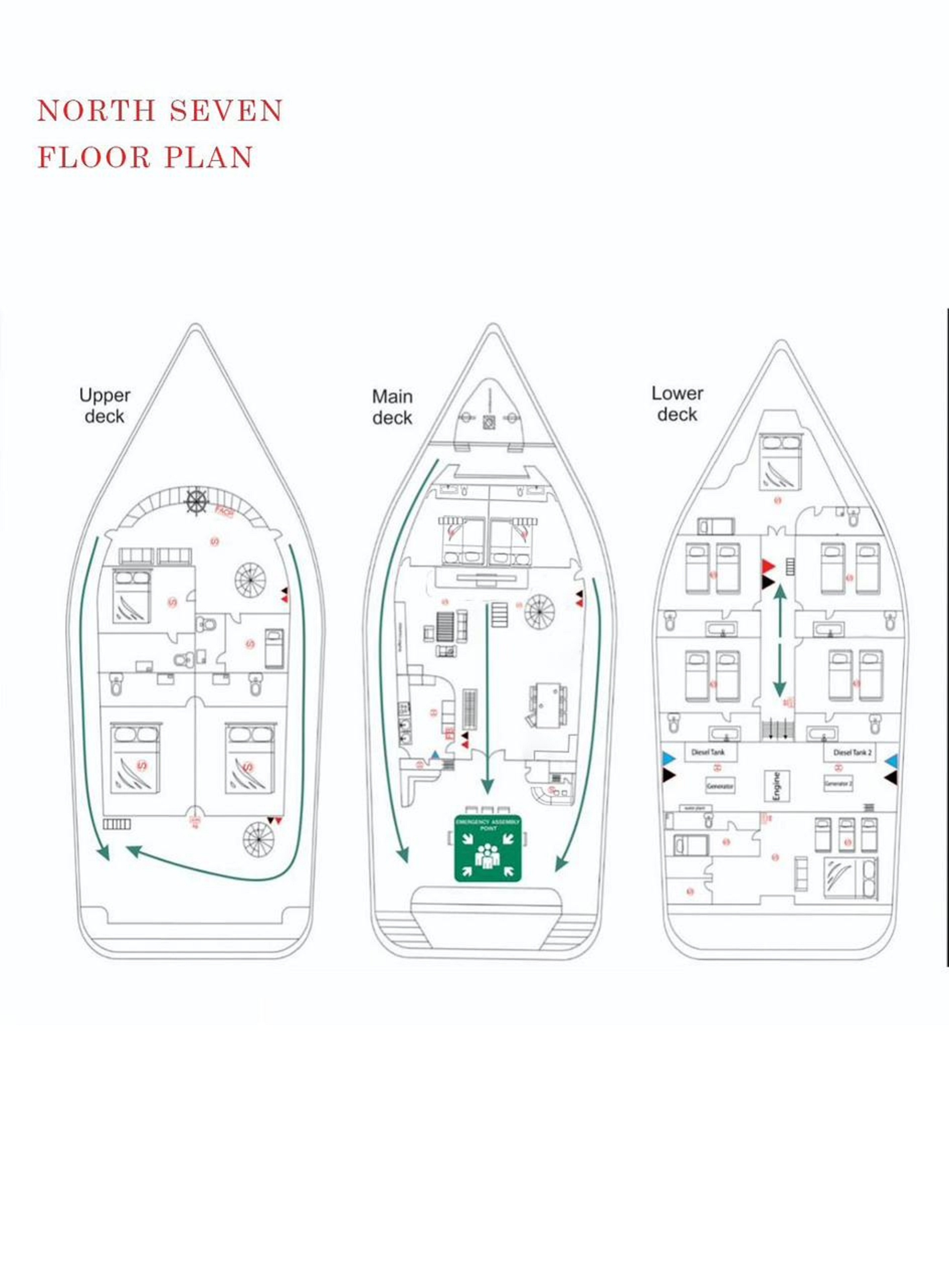 The Twin Room aboard North Seven is your peaceful haven after a day of exploration. Designed with comfort in mind, it features soft bedding, contemporary amenities, and tasteful decor, creating an inviting atmosphere where you can relax and take in the tranquil beauty of the Maldivian paradise.
