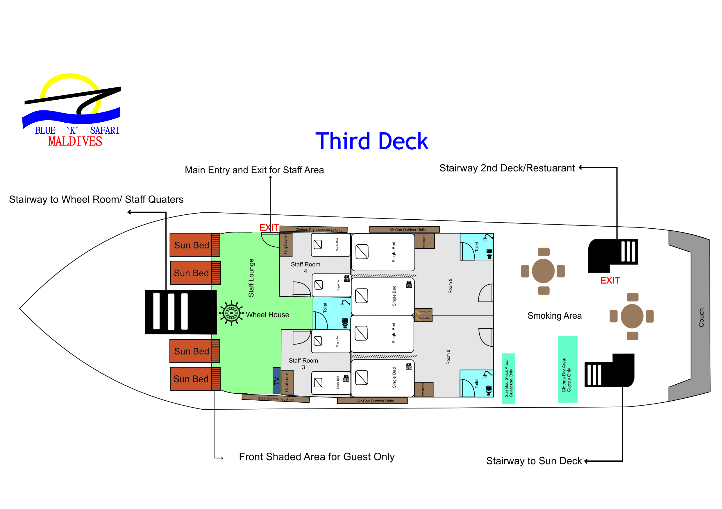 Soliel with spacious classic décor brings elegance to your diving holidays, soaking in the sun as you pass different hues of blues. Soliel can make all your diving dreams come true. Soliel is proud o be the only diving safari specialized in exploring the untouched dive spot of Maldives with all the diving amenities available. All the International dive instructors on board would guide you through one of the ‘Wonders of the World’ as said by Ibunu Batuta in his Chronicles.