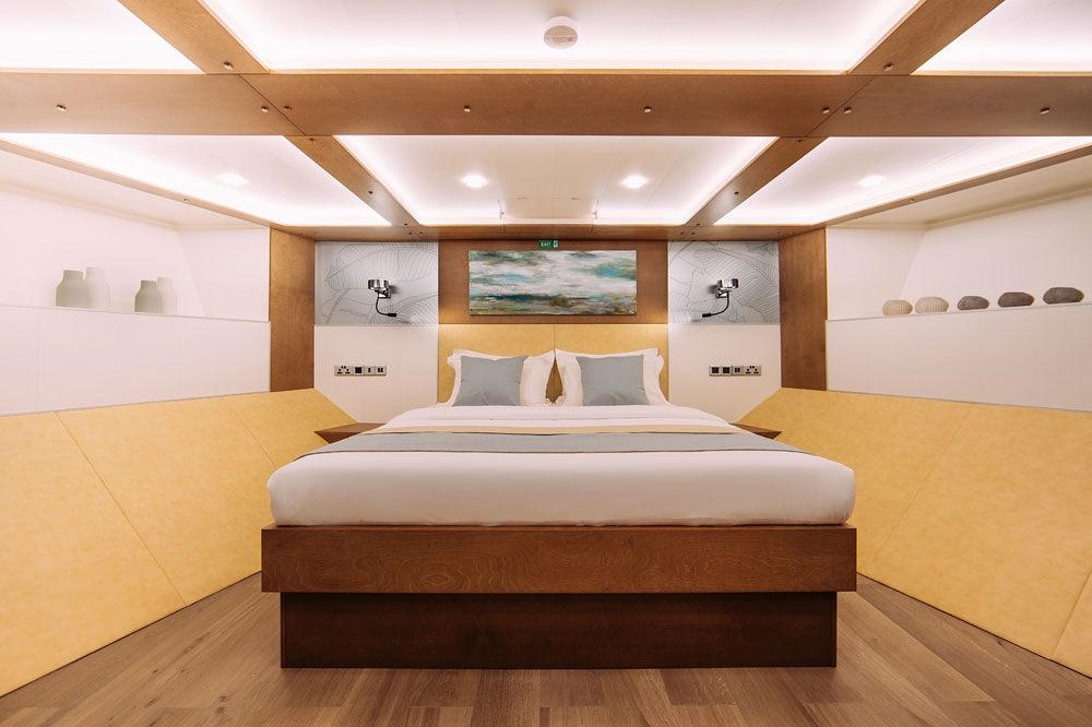 Situated on the main deck, the cabin offers a dreamy atmosphere.