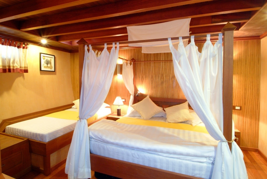 Each island has a school with children wearing their neat and trim English style uniforms smiling in front of the camera. The mosque is still the most beautifully decorated building on the island with gardens and multi-coloured flowers surrounding it. Some of the islands further away from the areas more frequented by tourist and holiday villages have retained their genuineness and kept their local culture. Those nearer the tourists areas have completely modified, or partly, their style of life and the fishermen have turned into gentle and careful shopkeepers selling multi-colour pareos, t-shirts and other souvenirs. The evenings on the boat are dedicated above all to relax…… a glass of something on deck under a starry sky chatting with friends. Now and again, a film is shown on board or there is some good music to enlighten the evening. Occasionally, depending on the itinerary, an evening out to the local holiday village disco will be proposed.