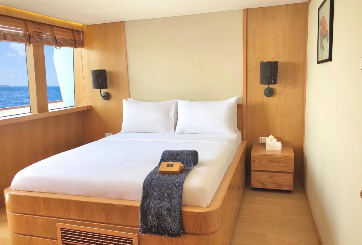 Safira was designed by Swiss architects with minimalism at its core, Safira was built in Egypt. Major renovations and changes were made to the internal workings of the yacht in order to cater to the climate and conditions of Maldives. The final result of which can be seen today. Safira offers generous accommodations for 26 guests when in Maldives as well as two cabins for support staff. She accommodates 12 guests when on international charters.