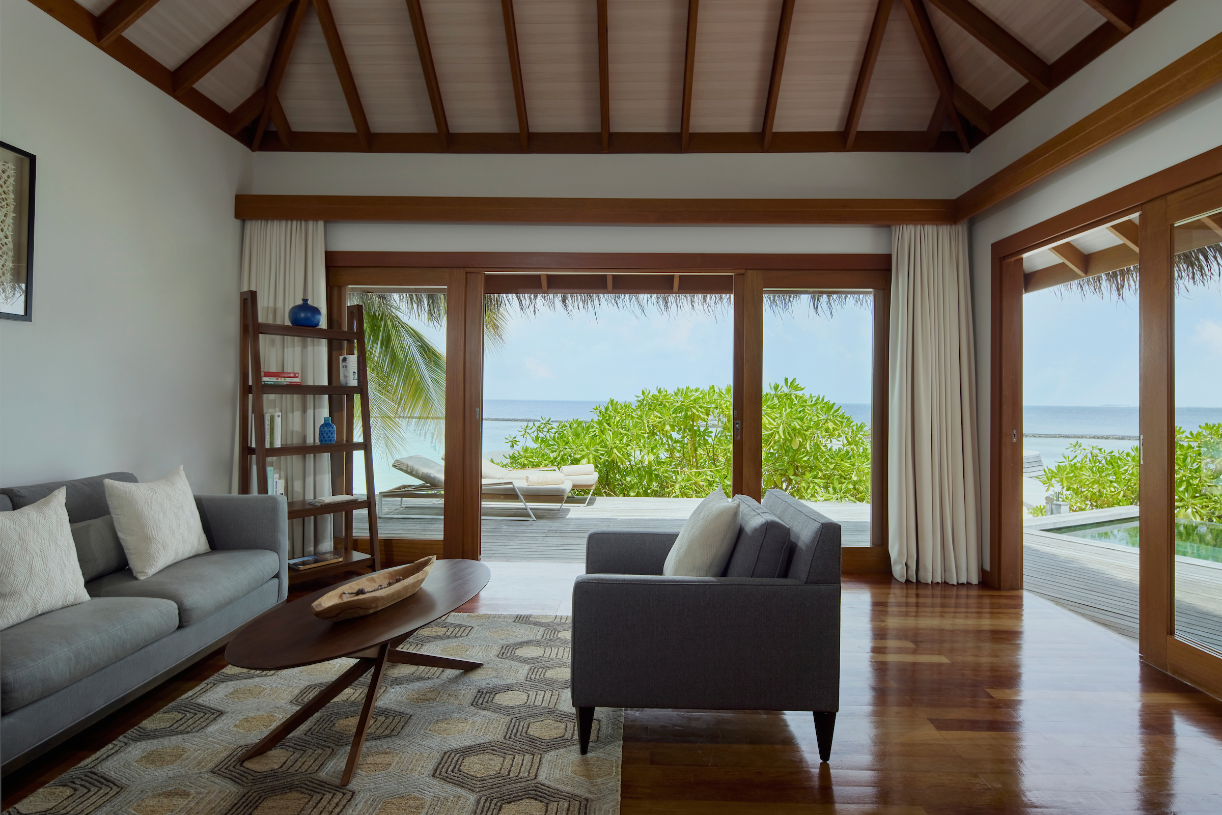 1 Baros Residence. A spacious beachfront villa surrounded by tropical plants.
