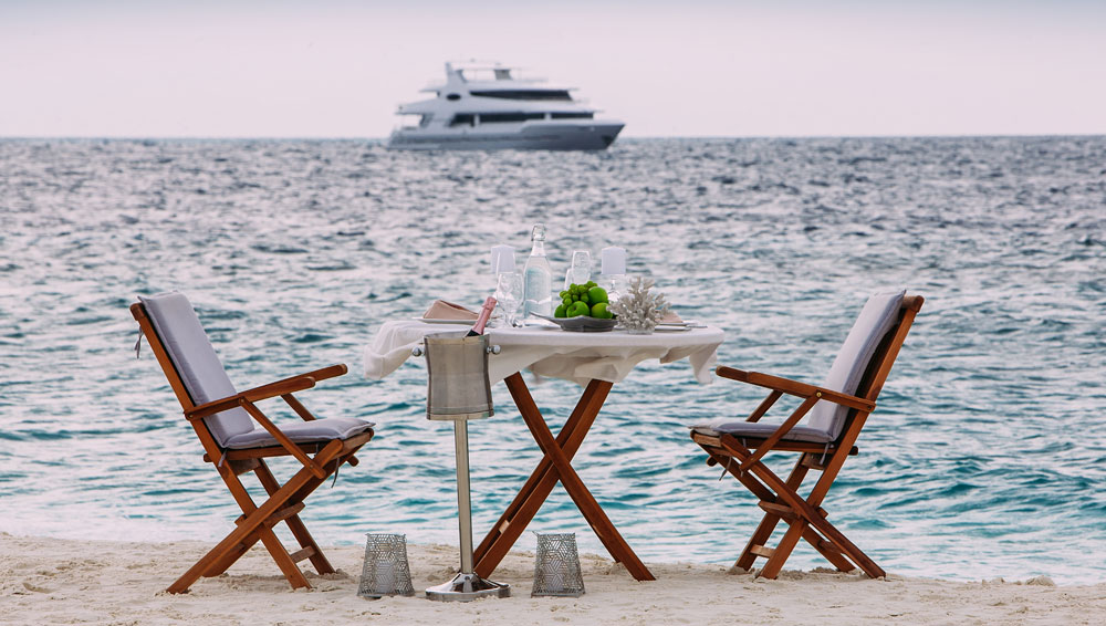Ощутите всё волшебство тропической ночи на романтическом ужине. Необитаемый остров. Шелест пальмовых листьев. Шум прибоя. Бархатное небо. Изысканно сервированный стол. И файер-шоу, которое проводится только для вас! Яхта на Мальдивах идеально подходит для того, чтобы устроить головокружительный праздник на свадьбу*, важную годовщину, день рождения.