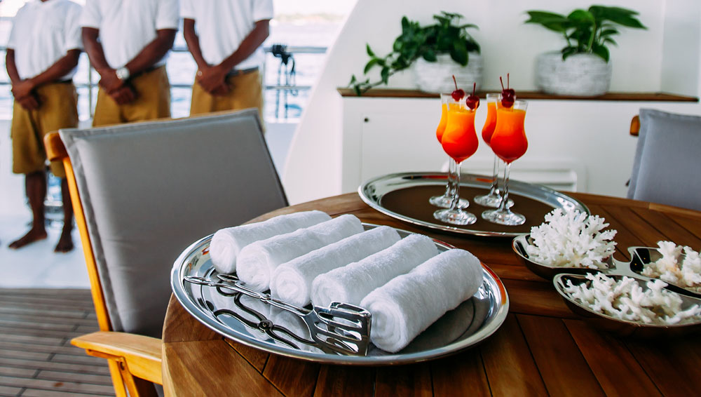 А в салоне на главной палубе есть большой телевизор, караоке, настольные игры и много пространства для самых зажигательных вечеринок. И не забудьте заглянуть в бар. Бокал прохладного просекко под звёздным мальдивским небом никогда не бывает лишним.
